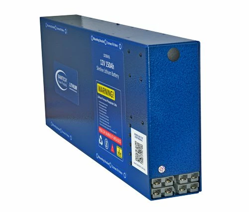Baintech 12V 150Ah Slimline Lithium Battery. At just 18kg, the unique slimline shape makes it the perfect battery for installations where space is a premium. Slide it behind a seat, bolt it to a wall or at the back of a canopy.