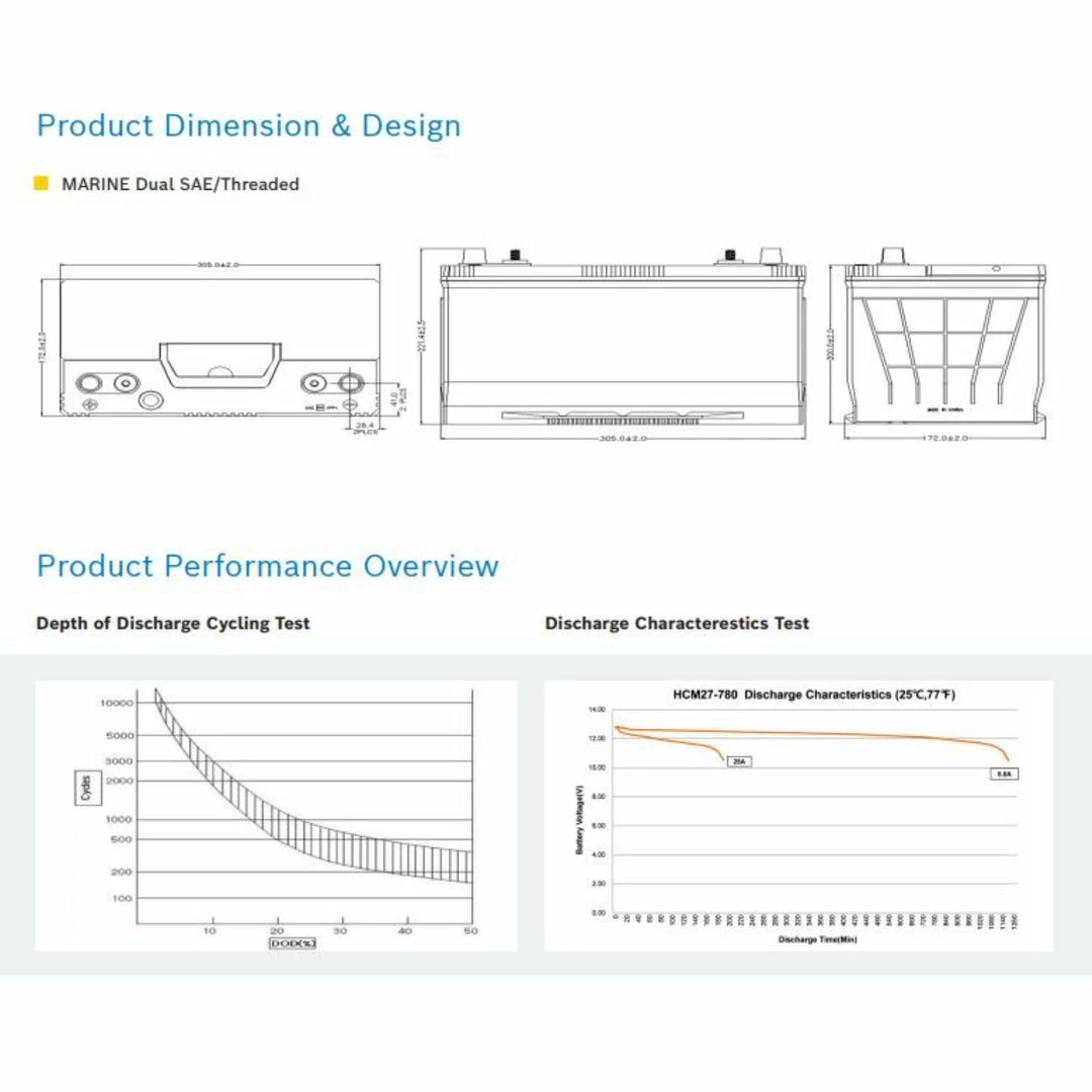 - Cold Cranking Amperes (CCA): 780 Amps
