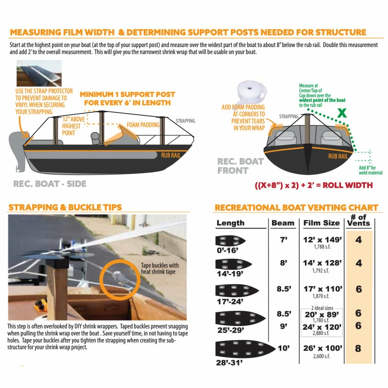- One piece coverage. Our shrink wrap comes in widths of 12-60 feet and can cover entire flatbed loads of machinery or even 60-foot-plus boats in one piece!