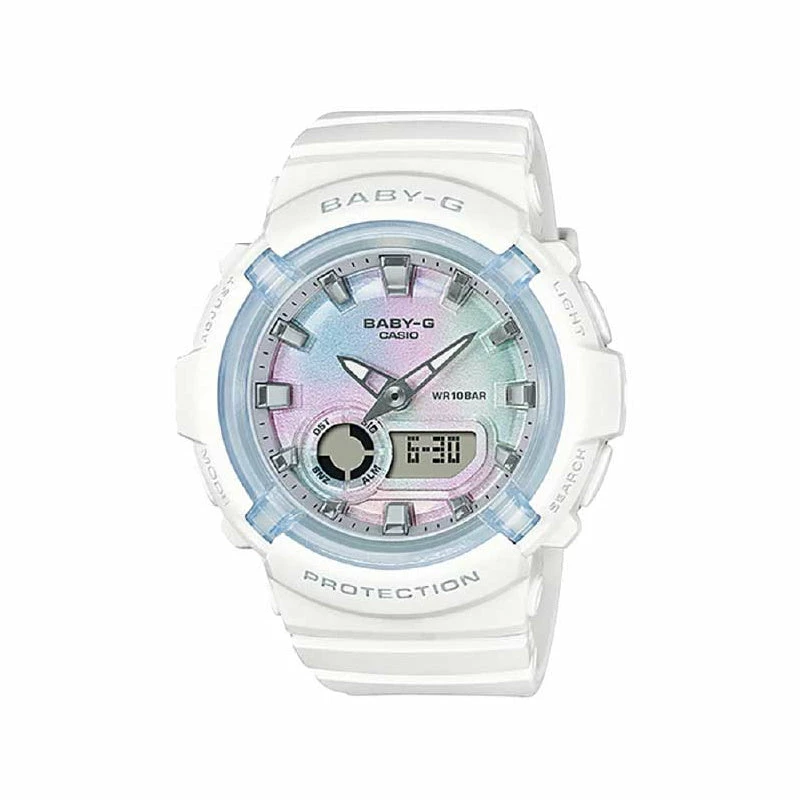 The BGA-280 Series layers multiple parts to create innovative and colourful designs. The round cases of these models and the cute impression of their hefty forms are complemented by the sporty touch of the metallic hour markers.