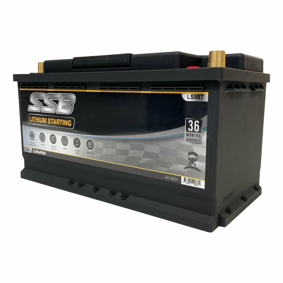 SSB Lithium Batteries (also known as Lithium Iron Phosphate Batteries) are an extremely light weight battery designed for starting applications and are a completely dry battery making them spill-proof and leak-proof.