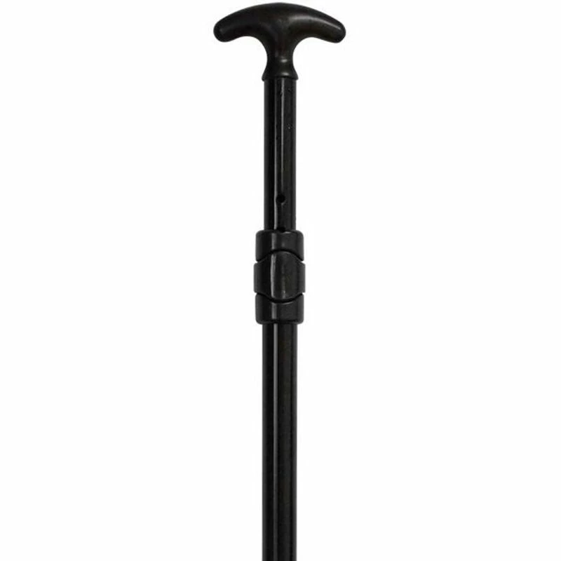 Its two-piece aluminum shaft with pin locking mechanism allows for quick length adjustment, while its T-grip handle offers maximum control for greater efficiency and less fatigue on longer trips.