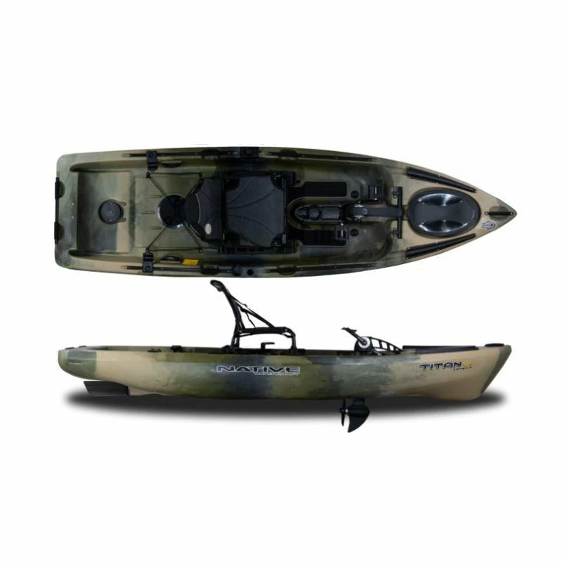 The Titan 10.5 can be purchased with a our transom-style motor mount that will accept many off-the-shelf trolling motors for a power-assisted ride making this one truly versatile kayak fishing platform.