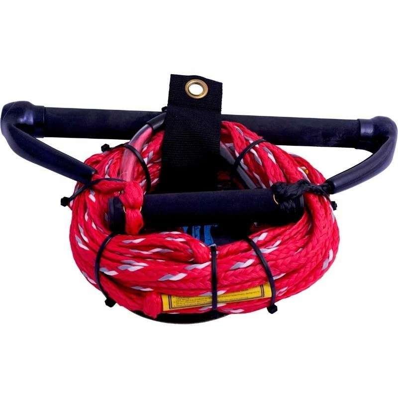 3 section (55’/60’/65’) 60 strand Poly E rope with 15” Team handle with 6” front handle that can be used on the kneeboard hook making kneeboard take offs a breeze. Comes with nylon rope caddy. Built to WSIA specifications.