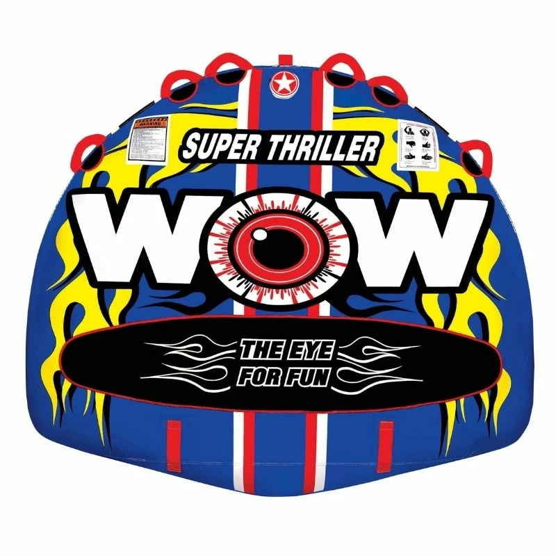 Deck tubes still remain the best category of towable tubes for boating. You may get tired from holding on to these inflatable towables, but the excitement of the ride is THRILLING. The Super Thriller is a 3 person towable tube and can be used by 1-3 riders. See how much air you can get and when you are finished relax using the towable tube as a floating inflatable island or a river float tube.